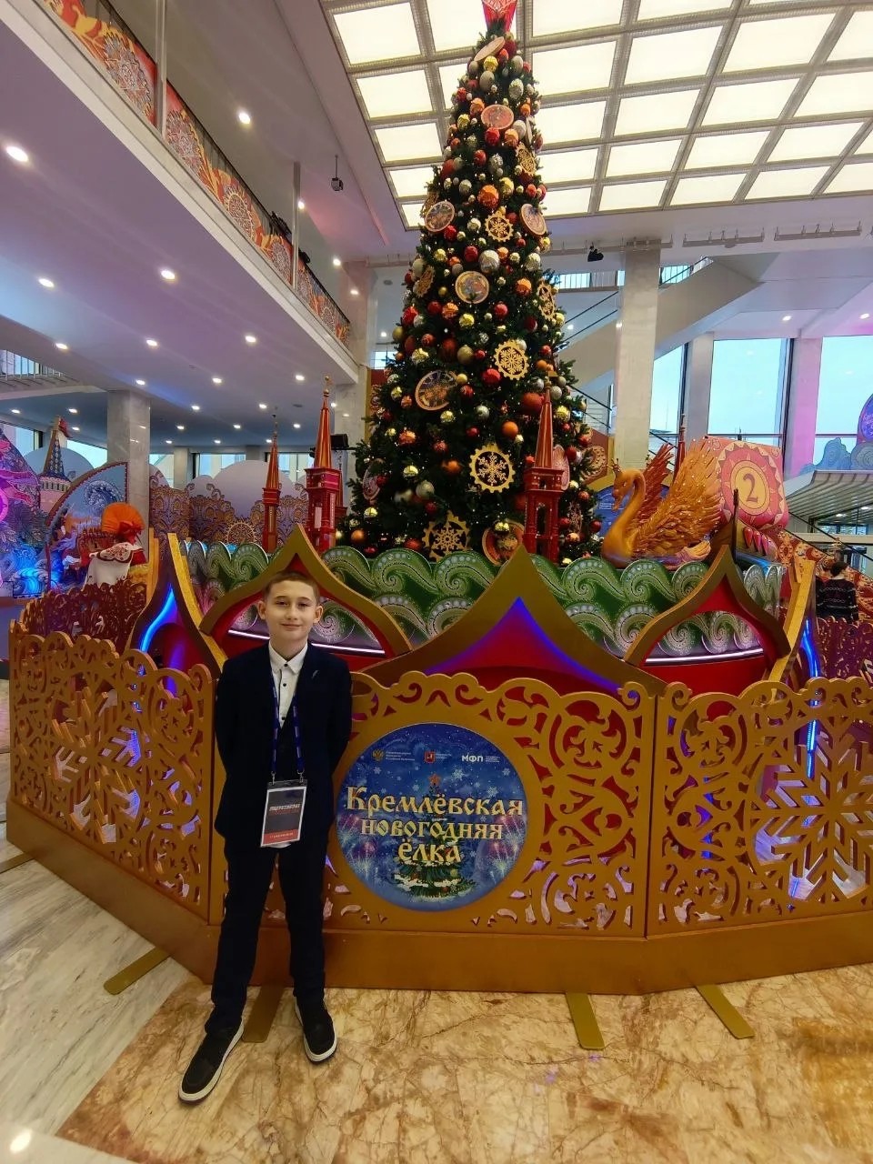 Кремлёвская ёлка объединила 6 тысяч детей со всей России: детей участников СВО и детей героев, отдавших жизнь за Родину. От Красноярского края в поездку отправились 86 ребят, и среди них Грачев Сергей, обучающийся 3 класса МБОУ «Северо-Енисейская средняя школа №1 им.Е.С. Белинского».
