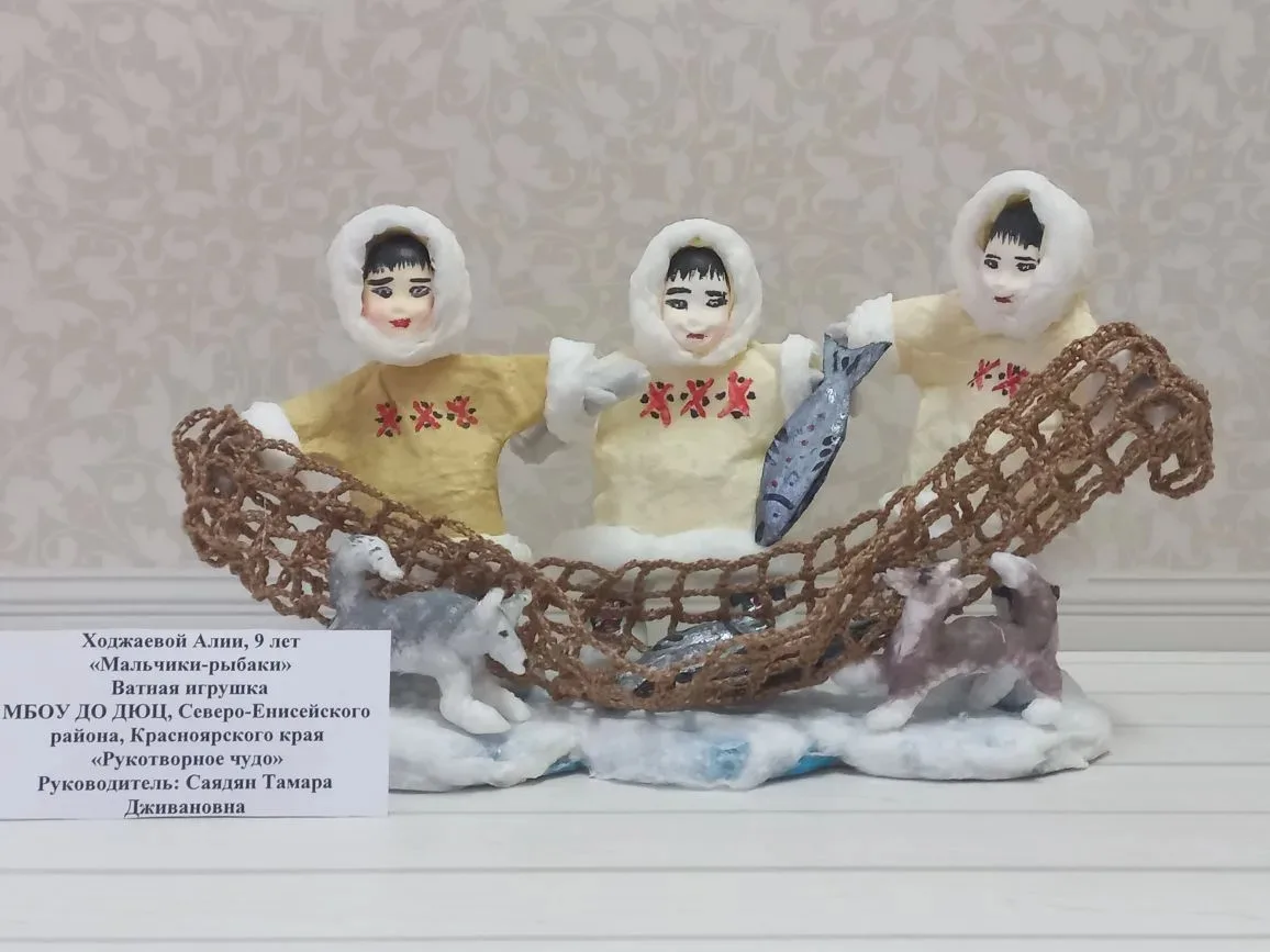 - Ходжаева Алия МБОУ ДО "Северо-Енисейский детско-юношеский центр", в номинации «Декоративно - прикладное творчество», возрастная группа 7-9 лет, работа "Мальчики-рыбаки" (руководитель Саядян Тамара Дживановна);